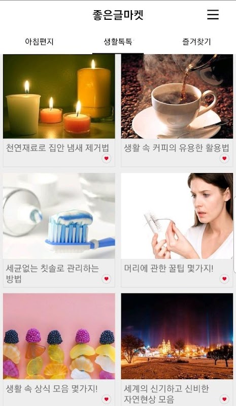 누구나 공감하고 공유하는 엄선된 좋은글과 생활정보만 담았습니다.하루 한번! 매일 아침7시! 아침편지와 생활톡톡 정보를 배달해드립니다.