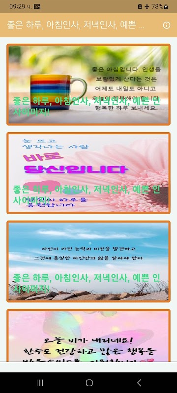 Ta aplikacja ułatwia wyszukiwanie pięknych zdjęć, które rozjaśnią dni i noce Twoich znajomych, rodziny i przyjaciół, dzięki zdjęciom wypełnionym pięknymi wiadomościami i przyciskami akcji. Rozjaśnij komuś dzień! Chcesz podzielić się wiadomością ze zdjęciem, aby przywitać się każdego ranka, lub udostępnić zdjęcie komuś wyjątkowemu? Witamy w zupełnie nowej aplikacji, w której możesz dzielić się pięknymi zdjęciami z życzeniami na dzień dobry ze wszystkimi znajomymi i bliskimi! Starannie wybraliśmy piękne zdjęcia, które rozjaśnią Twój dzień i noc, a także wywołają uśmiech na czyjejś twarzy. Podziel się tymi pięknymi zdjęciami z wiadomościami! Zaskocz swoich bliskich porannym, popołudniowym, wieczornym i nocnym powitaniem każdego dnia.