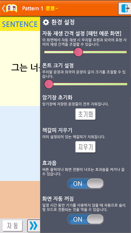 AUTO PLAY 기능을 통해 매번 클릭하지 않고 한번에 학습할 수 있습니다.