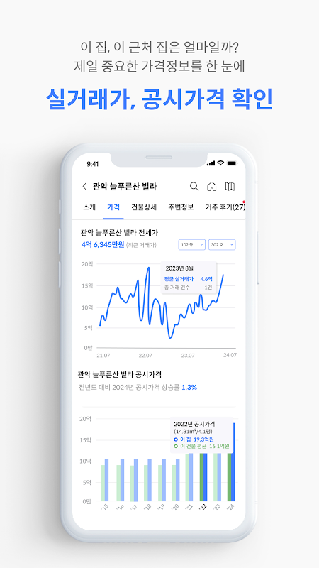 - Jeśli martwisz się wynajmem mieszkań, willi, biurowców, apartamentów typu studio lub nieruchomości na sprzedaż znalezionych na Zigbang, Today's House, Coffee Shop, Naver Real Estate, Peter Pan's Good Room, Hogaengnono, KB Real Estate i Subscription Home, skorzystaj z aplikacji Nieruchomości, aby sprawdzić rzeczywistą cenę transakcji.