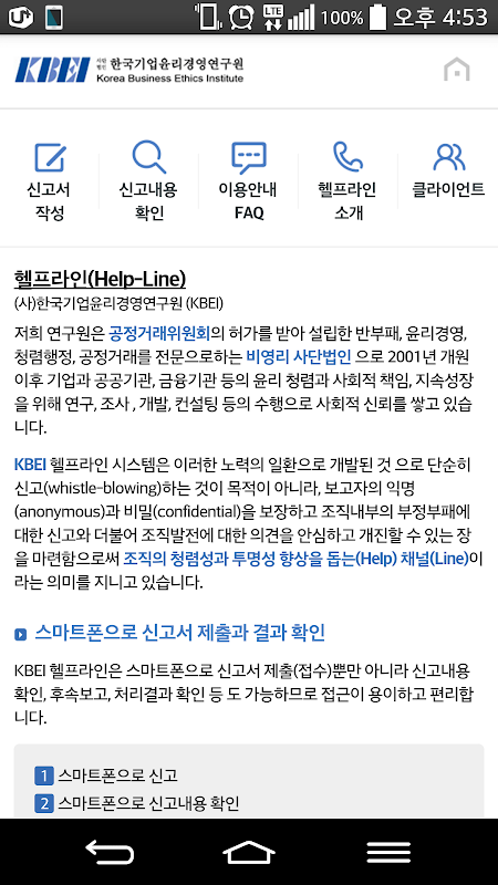 케이휘슬은 해당 조직의 부정비리를 알고 있는 내부 임직원 혹은 외부 이해관계자가 안심하고 신고 할 수 있는 부정부패 신고 APP 입니다.