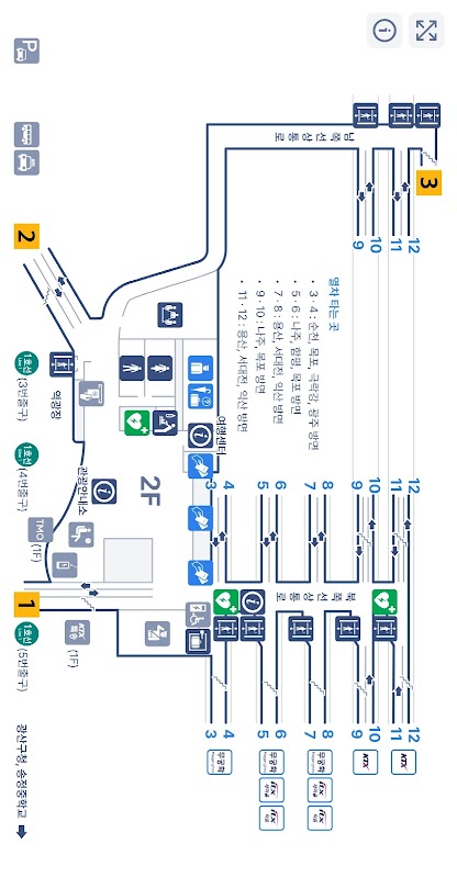20 stacji KORAIL (Gangneung, Gyeongju, Gwangmyeong, Gwangju Songjeong, Daejeon, Dongdaegu, Busan, West Daejeon, Seul, Suwon, Suncheon, Yeongdeungpo, Osong, Yongsan, Ulsan, Iksan, Changwon Central, Cheonan Asan, Cheongnyangni, Pohang) Zapewnia użytkownikom z mapą przedstawiającą najważniejsze obiekty