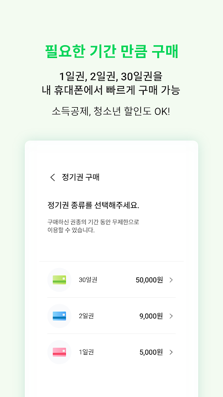 - Jest to ekskluzywna karta transportowa dla Cheongju City, która umożliwia nieograniczone korzystanie z autobusów miejskich Cheongju przez określony czas. (Niedostępne do transportu w innych obszarach)