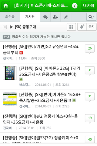 네이버카페 46만회원 최저가버스폰에서 진행하는 초특가 공동구매를