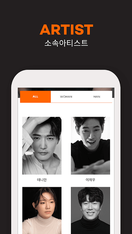 8. 어플리케이션의 검색기능을 통해 소속 아티스트를 검색하실 수 있습니다