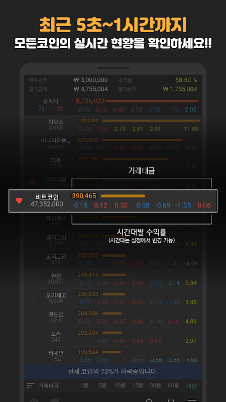 코인의정석 - 업비트 실시간 거래대금/수익률 1.3.2