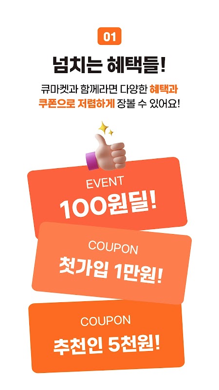 Wybrany przez ponad 300 000 osób Q Market dba o zakupy w domu z rabatami sięgającymi nawet 30 000 wonów i więcej.