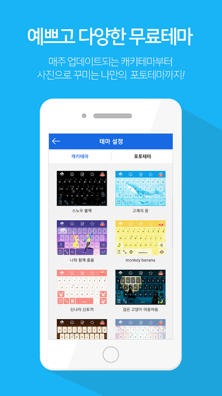 무료 키보드 테마가 가득한 예쁜 키보드!예쁘고 다양한 테마는 기본내가 좋아하는 연예인을 키보드로!나만의 포토테마로 개성있게 꾸며보세요~
