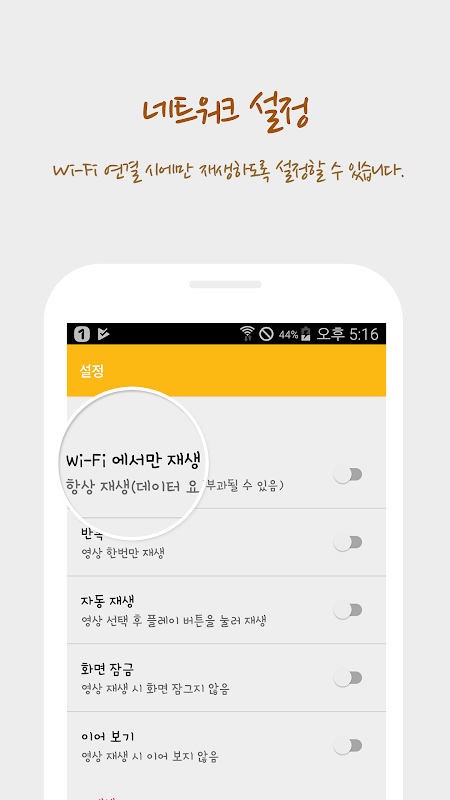 : Wi-Fi 연결 시에만 재생하도록 설정 할 수있습니다.