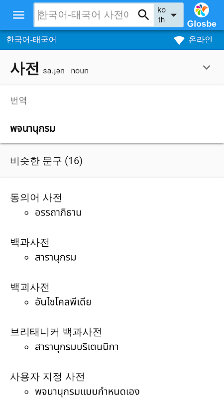 Glosbe - 멀티미디어 사전 태국어-한국어, 한국어-태국어