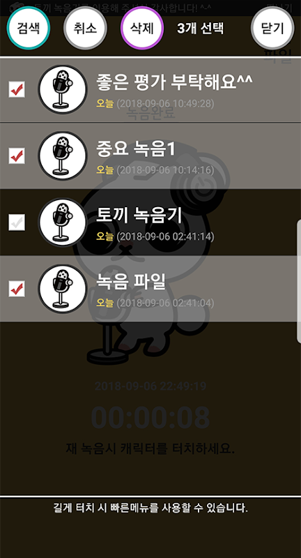 Aplikacja rejestrator. Jeśli dotkniesz postać królika, można uruchomić / zatrzymać nagrywanie.