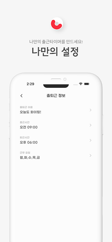 - Od przyjścia do pracy do wyjścia z pracy, automatycznie ustaw timer na żądany dzień tygodnia i otrzymuj powiadomienia na podstawie postępów w pracy!