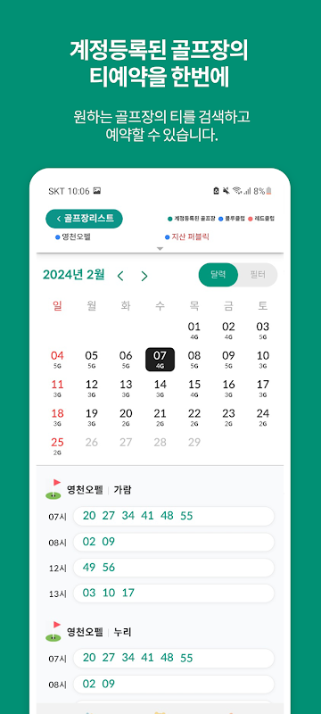 - Dotknij ikony żądanego pola golfowego na liście pól golfowych, następnie wprowadź informacje o koncie i dotknij przycisku Zweryfikuj. Następnie dotknij przycisku rejestracji, aby zarejestrować pole golfowe. Po sprawdzeniu pola golfowego, które chcesz zarezerwować, wśród zarejestrowanych pól golfowych na liście pól golfowych, możesz wyszukać dostępne daty/godziny, dotykając przycisku zaloguj się/szukaj. Dokonanie rezerwacji w polu golfowym jest łatwe.