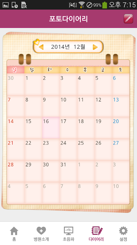 - 초음파 영상이 표시되는 산모 다이어리를 작성할 수 있습니다.