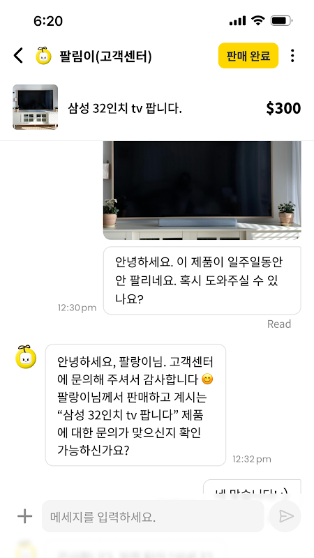 - 1:1 팔마켓 채팅으로 자유로운 거래 약속