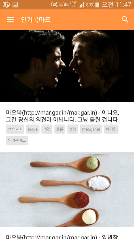 웹 서핑 중 유용한 정보가 담긴 웹 페이지 또는 사이트를 발견한 경우 마가린에 북마크로 저장해 보관하세요. 언제 어디서든 마가린 앱에 접속하시면 내가 보관한 북마크를 찾아 볼 수 있습니다.