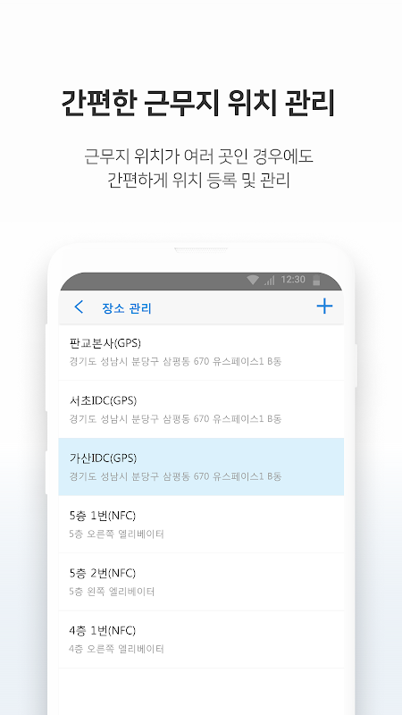 ㆍ Swobodnie zapisuj swoją obecność w różnych wyznaczonych miejscach pracy, od centrali po dealerów.