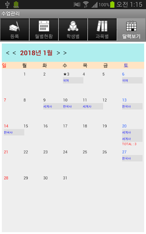 ㅇ 수업일정 등록 ( 수업일정을 달력으로 보기 )