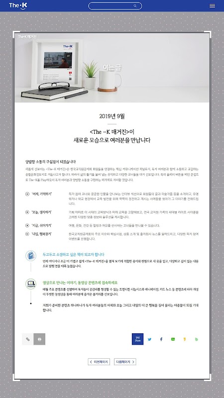 2019년 08월 28일 이전에 설치하셨던 The-K 매거진 애플리케이션을 삭제하시고 다시 설치하셔야 합니다.