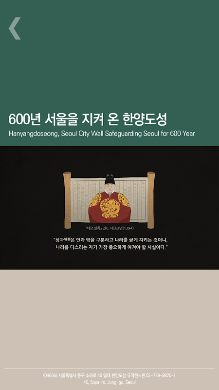 「Hanyang City Walls Exhibition Hall」 to aplikacja, która pozwala na przeglądanie prototypu murów miejskich Hanyang na telefonie komórkowym. Poznaj miasto Hanyang, odrestaurowane za pomocą technologii rozszerzonej rzeczywistości (AR).