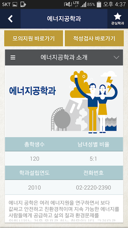 5. 학과소개 – 학과별 소개, 커리큘럼, 진로확인, 경쟁률 및 학과상담