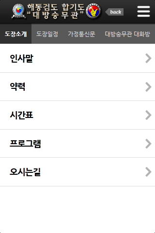 본 체육관에서는 해동검도와 합기도 수련과 더불어 예절교육, 인성교육, 교우들과의 원만한 생활관을 가르치고 있으며 명상과 단전호흡, 학교체육(줄넘기, 구르기, 뜀틀 등)을 병행하여 지도함으로써 좀 더 다양한 프로그램으로 수련에 임하고 있습니다.