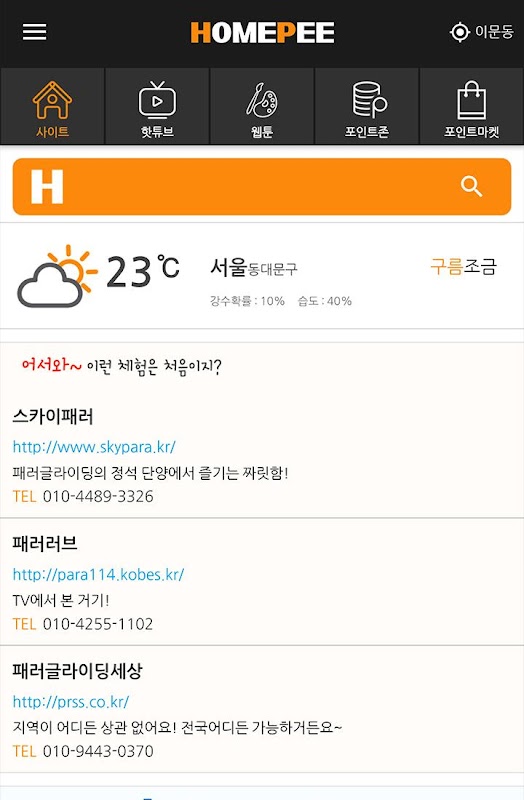 인기웹툰의 유료서비스를 홈피의 포인트로 구매할 수 있습니다.