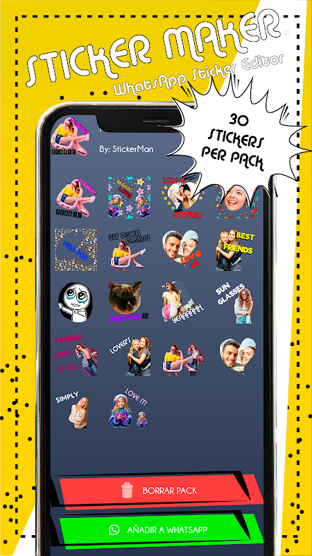 Twórz własne naklejki i memy do WhatsApp ze swojej galerii lub aparatu. Dostosuj się do swoich upodobań lub użyj magicznej różdżki do automatycznego przycinania i to wszystko! Teraz możesz użyć swojego dzieła, aby je dodać i stworzyć niezliczone niestandardowe naklejki. Możesz także dodać dowolny tekst, pokolorować go i zastosować styl, który najbardziej ci się podoba, w dziesiątkach czcionek.