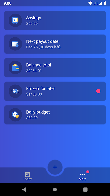 Just tell Debby your balance and next payment date – she will calculate your daily budget and will help you to save money! She can also freeze a certain amount of your budget and save it until later to pay your rent, bills, or other mandatory payments. Everything left from your daily budget will be asked to be saved, or you can use saved amount to extend your daily limit.