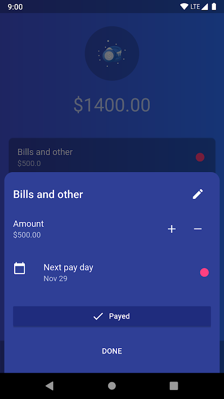 - reminds about upcoming payments (rent, bills, other)