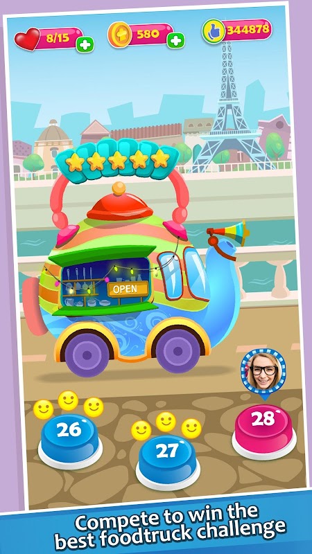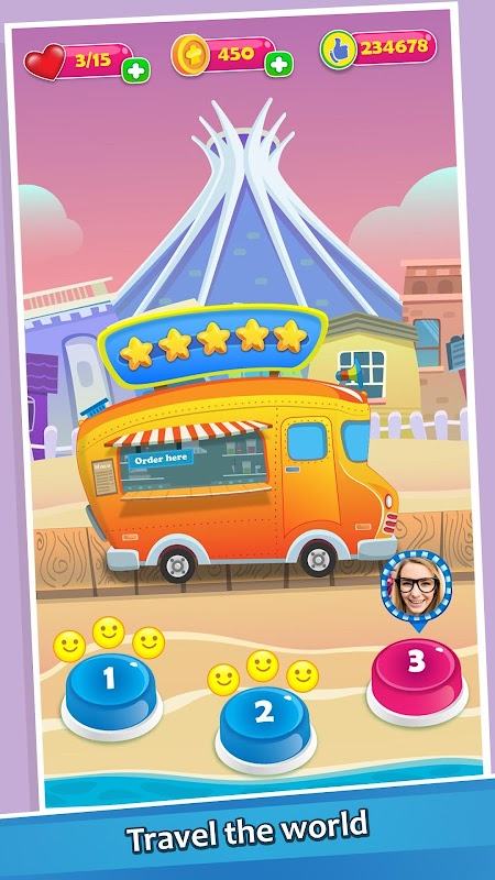 Play the story as a super chef travelling the world in My Food Truck. Crush candies, pastries in this match 3 game fever. Connect same food items in this match 3 mania.