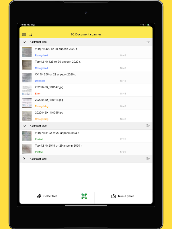 Zrób zdjęcia dokumentów i wyślij wynik rozpoznania do swojego programu 1C
