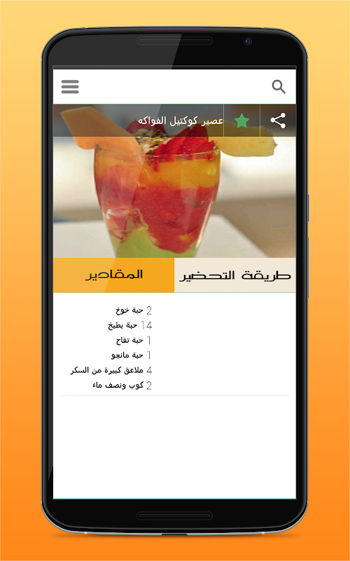 • إمكانية مشاركة وصفة العصير أو المشروب