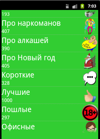 И всё это собрано в одном приложении, которое так легко установить и пользоваться! В сборнике собраны самые смешные анекдоты. Есть 3 категории анекдотов, в которых собраны лучшие анекдоты, которые идут в перемешку!