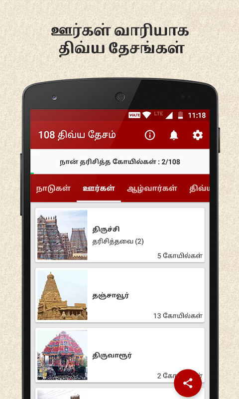 Naszym głównym mottem jest skłonienie naszych użytkowników do odwiedzenia wszystkich 108 świątyń, które za ich pośrednictwem uzyskają upiększenie. Więc przysięgnij sobie, że najpierw odwiedzisz Divya Desams w swoim rodzinnym mieście, a następnie rozszerzysz swoje wizyty na inne obszary.