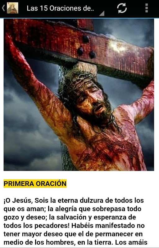 Przez długi czas, St. Bridget chciał wiedzieć, ile rzęsy otrzymał Naszego Pana w Jego męce. Pewnego dnia Jezus ukazał mu się, mówiąc: "Mam w moim ciele pięć tysięcy czterysta osiemdziesiąt rzęsy; Są 5,480 rzęsy (pamiętajmy, że były sześćdziesiąt kaci, którzy go bić, którzy załatwiali Piłat obiecał mu wolność po karze i Żydzi przekupili katów więc byłoby martwe, ale Jezus nie umarł i wciąż ubijania i ubijania, na tym samym liczba umocowania wyjaśnione i mogą stanowić w opłakanych warunkach wziął krzyż). Jeśli chcesz naprawdę uczcić je z pewnym szacunkiem, powiedzmy 15 razy Ojcze nasz; również 15 razy Zdrowaś Maryjo, z następującymi zdaniami, przez cały rok. Pod koniec roku, trzeba będzie honorowane każdego z moich ran. " (Nasz Pan sam dyktował modlitwy do świętego).