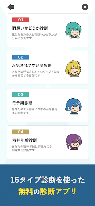 Jest to gra, w której możesz przeprowadzać wróżby i różne diagnozy, korzystając z 16 typów osobowości.