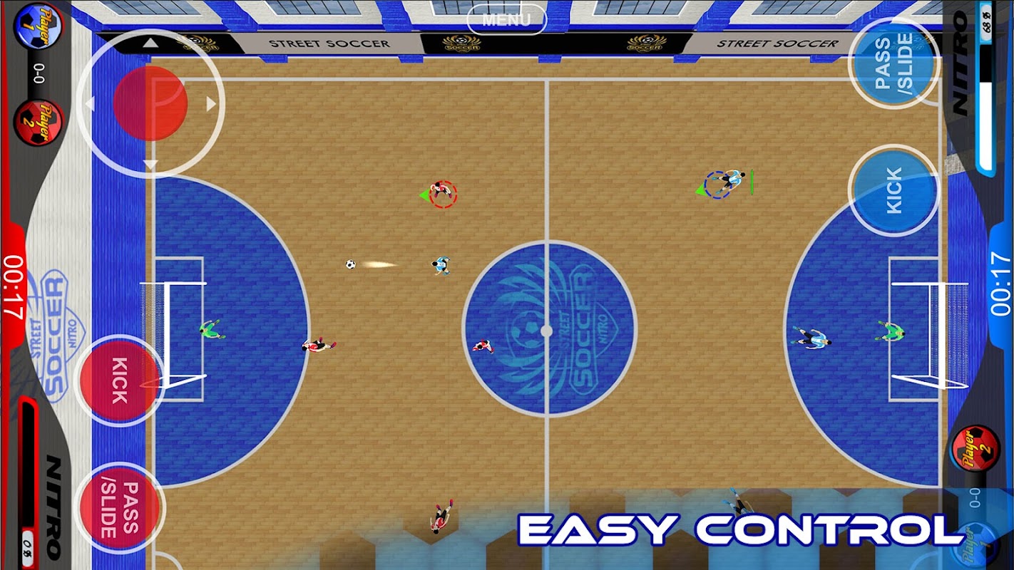 Wybierz swój stadion, graj na ulicy, boisku piłkarskim lub siłowni. Załaduj pasek nitro, mając piłkę, aby zyskać dodatkową prędkość lub przygotować kopnięcie na dodatkową siłę.