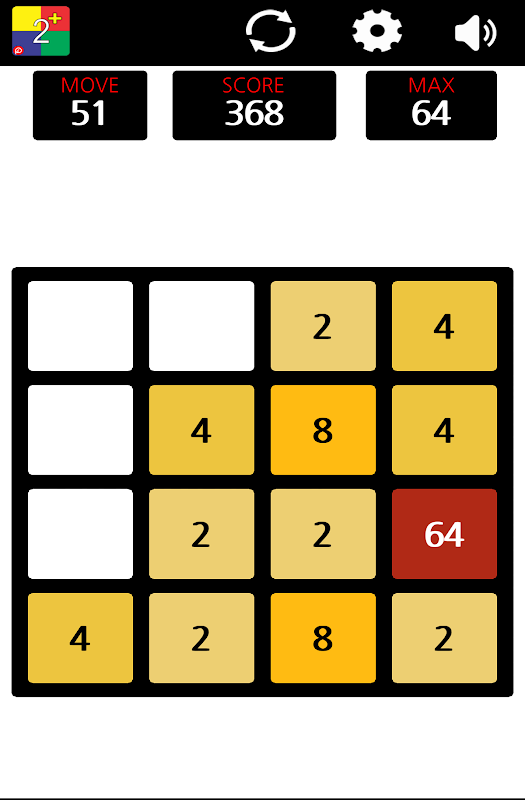 Same numbers add to each other and mingle to single box (2 + 2 = 4). Excited to watch number increasing by hitting each other by moving all direction.