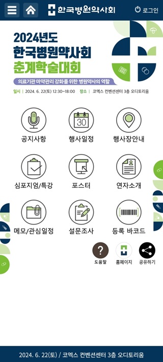 Aplikacja mobilna, która umożliwia wygodne sprawdzanie harmonogramu wydarzeń wiosennej konferencji Koreańskiego Towarzystwa Farmaceutów Szpitalnych (KSHP) 2024 oraz materiałów prezentacyjnych, takich jak sympozja/artykuły badawcze/przemówienia/plakaty