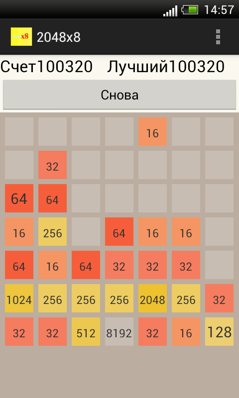 Игра 2048х8 для тех кто устал от мелких неуверенных двоек и хочет играть сразу чем то побольше с 16!