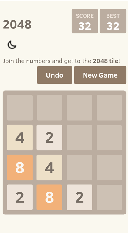 The 2048 app is an addictive puzzle game. The game is considered to be won if you reach the number 2048 by pushing the same numbers together.