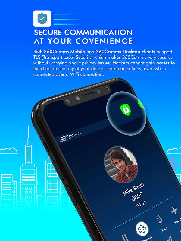 Zarówno klient 360Comms Mobile, jak i 360Comms Desktop obsługują protokół TLS (Transport Layer Security), co sprawia, że usługa 360Comms jest bardzo bezpieczna, bez obawy o kwestie prywatności. Hakerzy nie mogą uzyskać dostępu do klienta, aby zobaczyć jakiekolwiek dane lub komunikaty, nawet jeśli są połączone przez połączenie Wi-Fi.