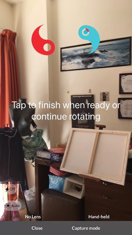 Po prostu obróć, aby uchwycić pierwszy pokój, naciśnij i przytrzymaj miejsce, w którym chcesz połączyć następny pokój, przechwyć następny pokój. Zwiedzanie apartamentu z dwiema sypialniami nie powinno zająć więcej niż 5 minut.