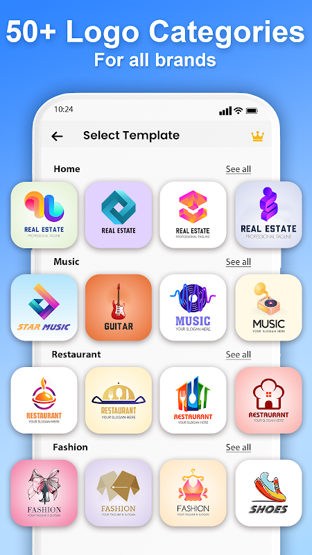 - Kategorie inteligentnych projektów logo: Usprawnij proces projektowania dzięki inteligentnym kategoriom projektowania logo i łatwemu wyborowi koloru logo.