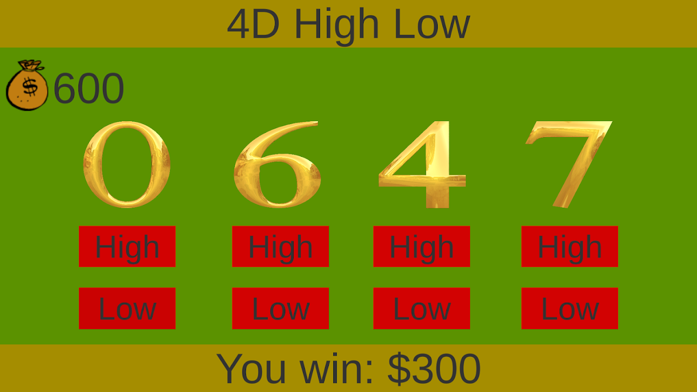 If you choose button high for that particular number and its value is higher than the other three number. You win!!!