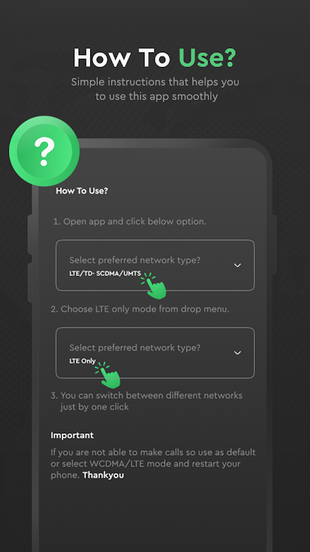 Korzystając z przełącznika 4G Lte, możesz łatwo przełączać się z dowolnego trybu sieciowego, tj. 2G, 3G itp. bezpośrednio do sieci 4G Lte bez żadnych komplikacji lub ograniczeń nałożonych na tę aplikację do przełączania sieci. Przełączanie sieci na 4G LTE jest bardzo łatwym i prostym zadaniem, gdy korzystasz z 4G Switcher.