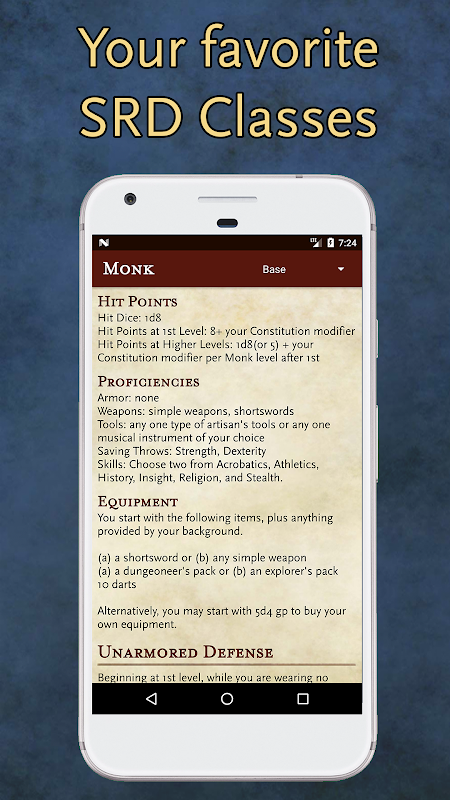 Wszystkie informacje dostarczone przez aplikację można znaleźć w wersji 5.1 System Reference Document (SRD) i są związane warunkami wersji 1.0a Open Gaming License (OGL) od Wizards of the Coast (WotC).