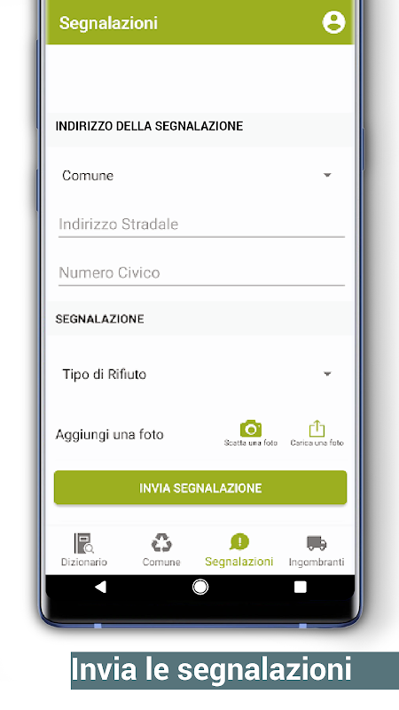 Aplikacja umożliwia przesyłanie raportów do Seitoscana poprzez załączenie również zdjęcia. Raport będzie zarządzany zgodnie z procedurami Seitoscana i wysyłany do operatorów w celu rozwiązania problemu.