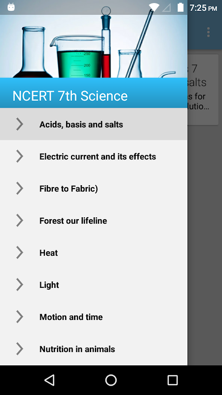 Aplikacja Science Class 7 zawiera poniższe rozdziały: